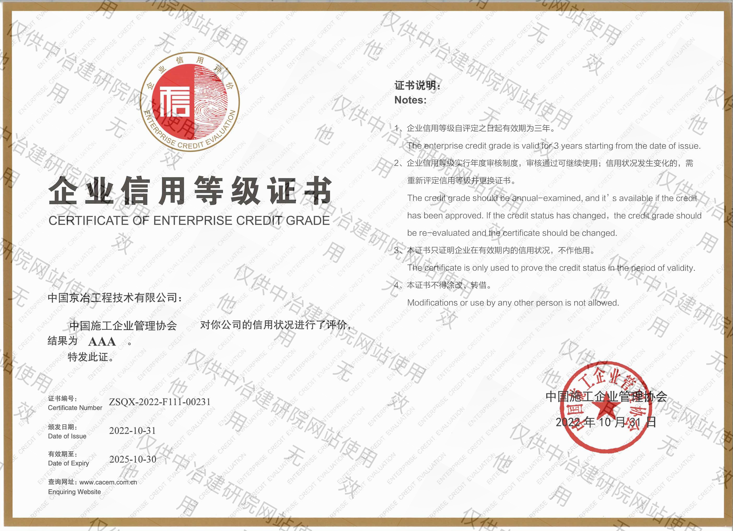企業信用AAA等級證書