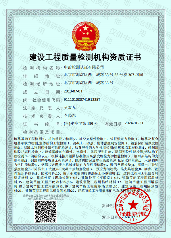建設(shè)工程質(zhì)量檢測(cè)機(jī)構(gòu)資質(zhì)證書